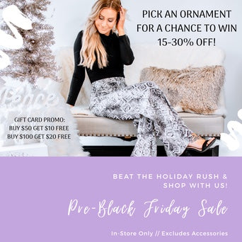 This Friday we are having our pre-Black Friday event! (11-7 PM) We decided to move it up a week to make sure you guys have time to spend with the family, and your Friday after Thanksgiving all snuggled up with your favorite PJ's watching movies and eating leftovers.