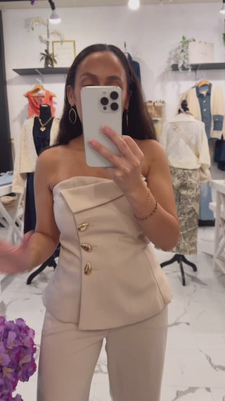 Step into instant sophistication with the Iconic It Girl Trousers! Designed in a chic beige hue, these tailored trousers bring timeless polish with a modern edge. The high rise waist flatters your figure, while the straight leg cut elongates your silhouette for a confident, put-together look. Lightweight with just the right amount of structure, they transition seamlessly from office hours to evenings out. Pair them with the matching corset top, Cross My Heart Ring, Margaret Earrings, and boots.
