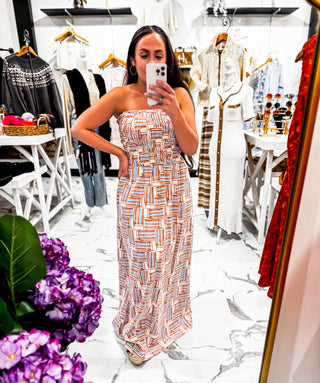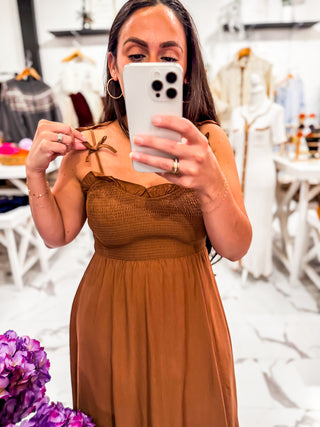 Queue Me In Striped Mini Dress (Brown Striped)