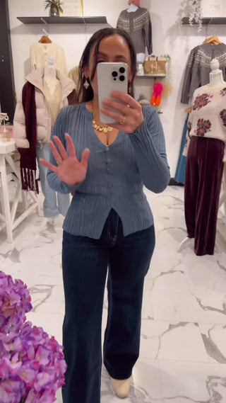 A timeless pair you’ll reach for again and again. A true wardrobe staple that never goes out of style! The Forever Favorite Wide Leg Jeans feature a flattering high rise with a relaxed wide leg silhouette that creates an effortlessly polished look. Crafted in a classic dark wash, these jeans are easy to dress up or down and work seamlessly from day to night. Designed to sit comfortably at the waist, they offer a structured yet wearable fit with just the right amount of ease through the leg. Pair this denim with our Love Language Top, Sylvie Necklace, and flats.