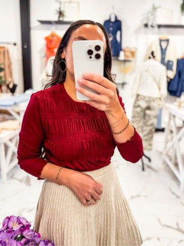 Merlot Ruffle Long Sleeve Top (Burgundy)