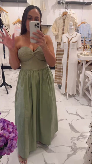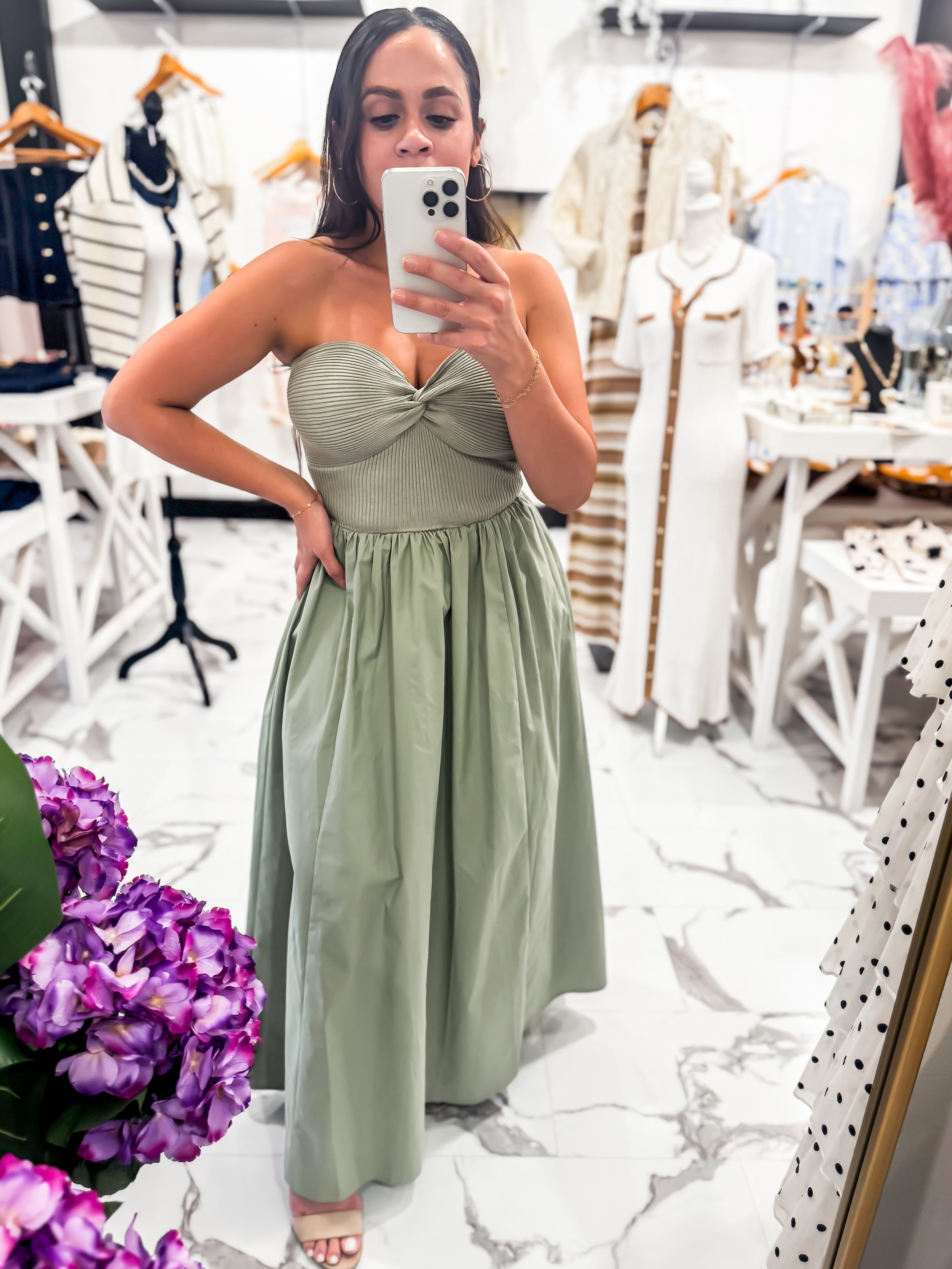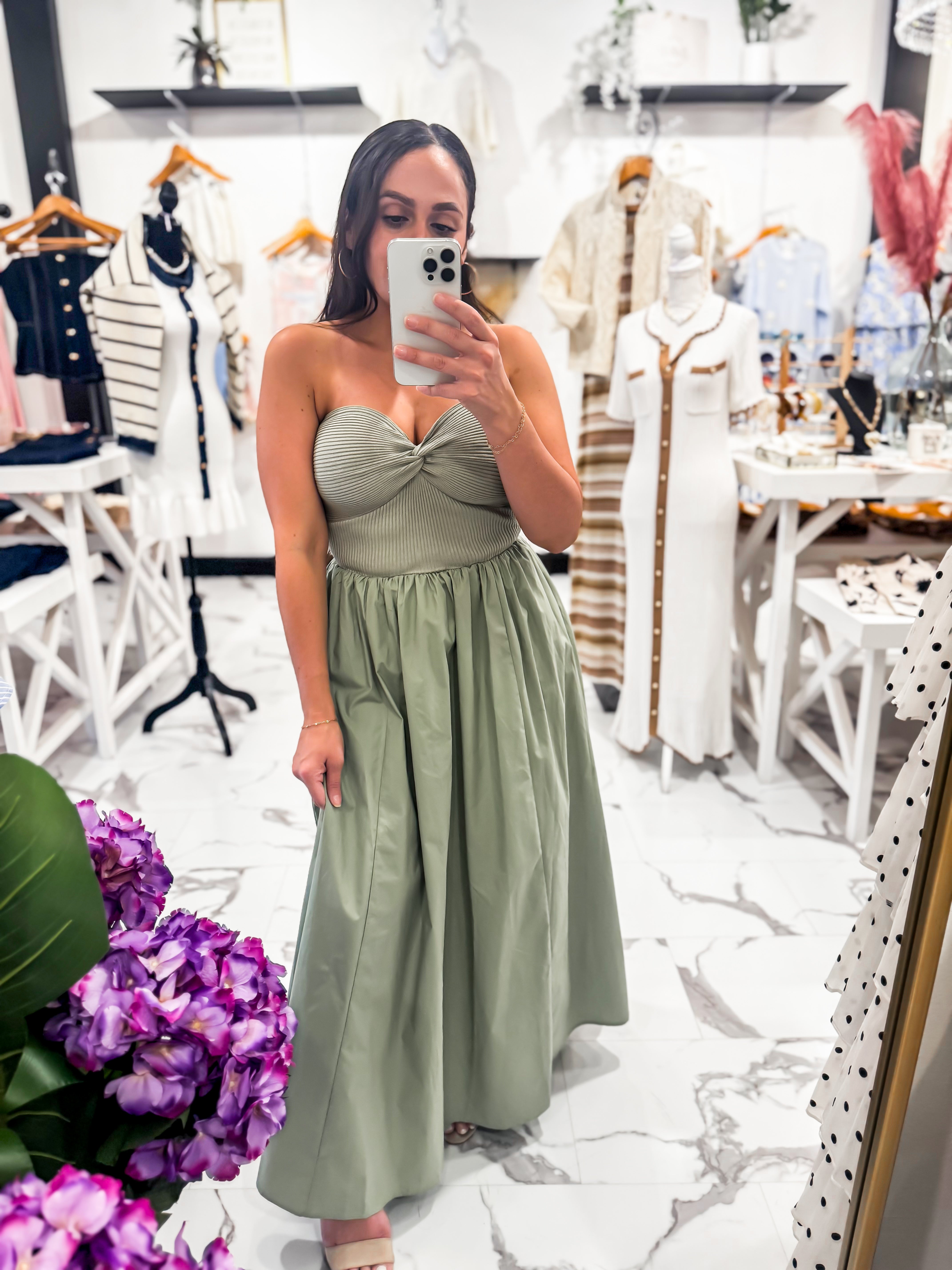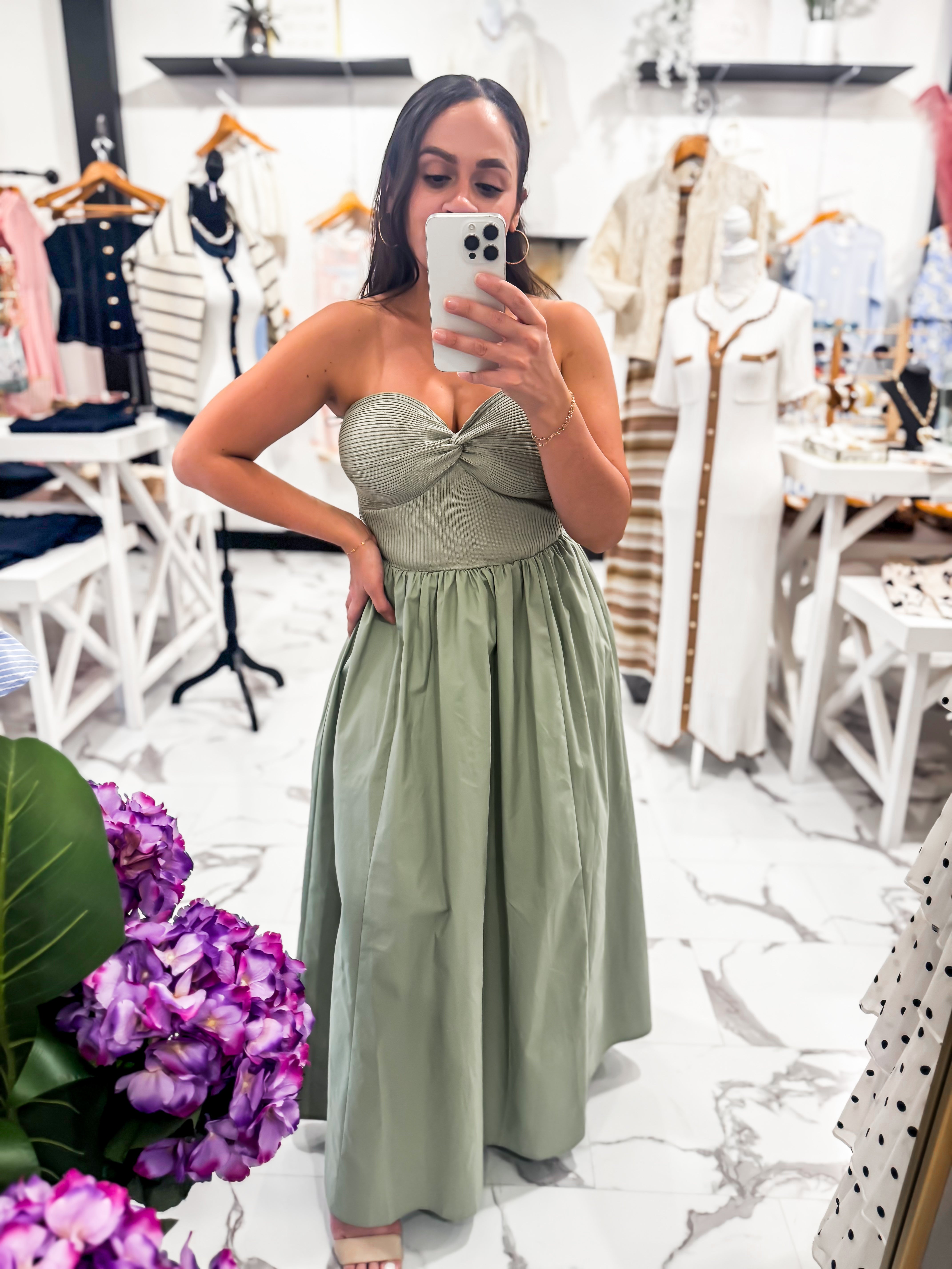 Meet your new effortless statement piece. Our Twist of Fate Ribbed Midi Dress features a beautifully structured twist-front bodice that adds texture and dimension, paired with a soft, flowy skirt that moves with ease. The ribbed detailing through the top creates a flattering, sculpted fit, while the olive hue gives it that timeless, earthy feel you can wear season after season. Rock this dress with our French Girl Cardigan, Julia Necklace, and sandals.