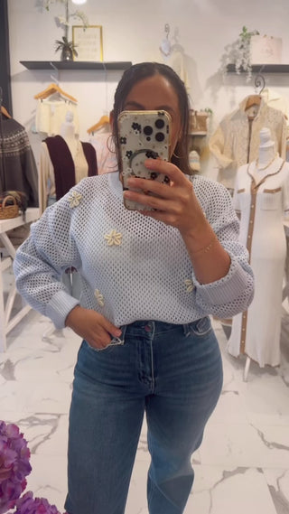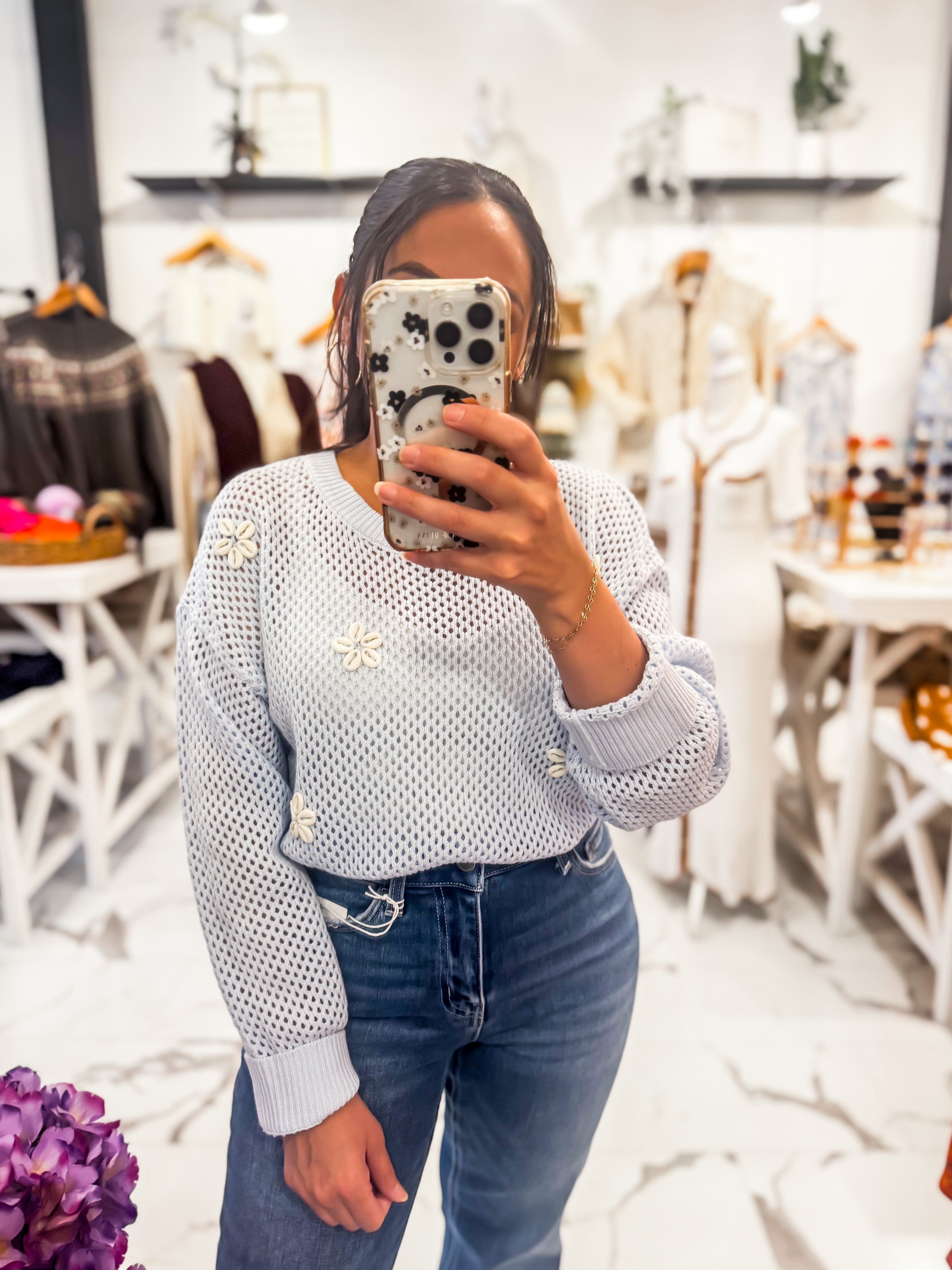 It’s the little details that make an outfit feel extra special and this sweater proves it! The Little Things Knit Sweater features a soft open knit design in the prettiest sky blue shade, finished with delicate seashell appliqué details that add such a sweet, feminine touch. Designed with a relaxed fit, classic crew neckline, and ribbed cuffs and hem, this sweater feels effortlessly comfortable while still looking polished. The lightweight knit makes it perfect for transitional weather, giving you just the right amount of warmth without feeling heavy. Pair this knit with our Zero Effort Jeans, Andrea Ring, and sandals.