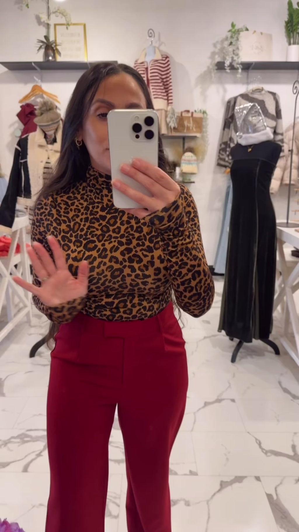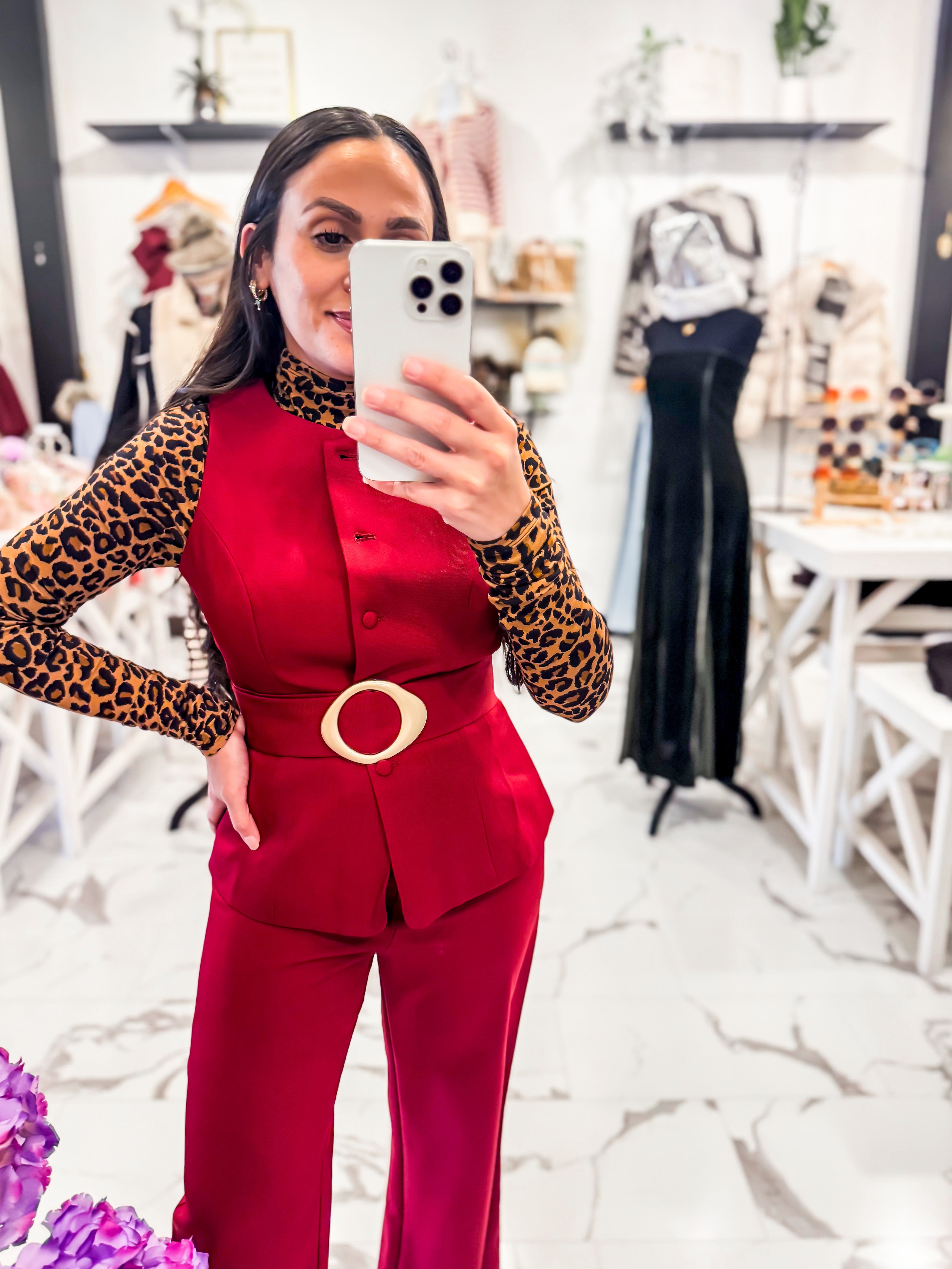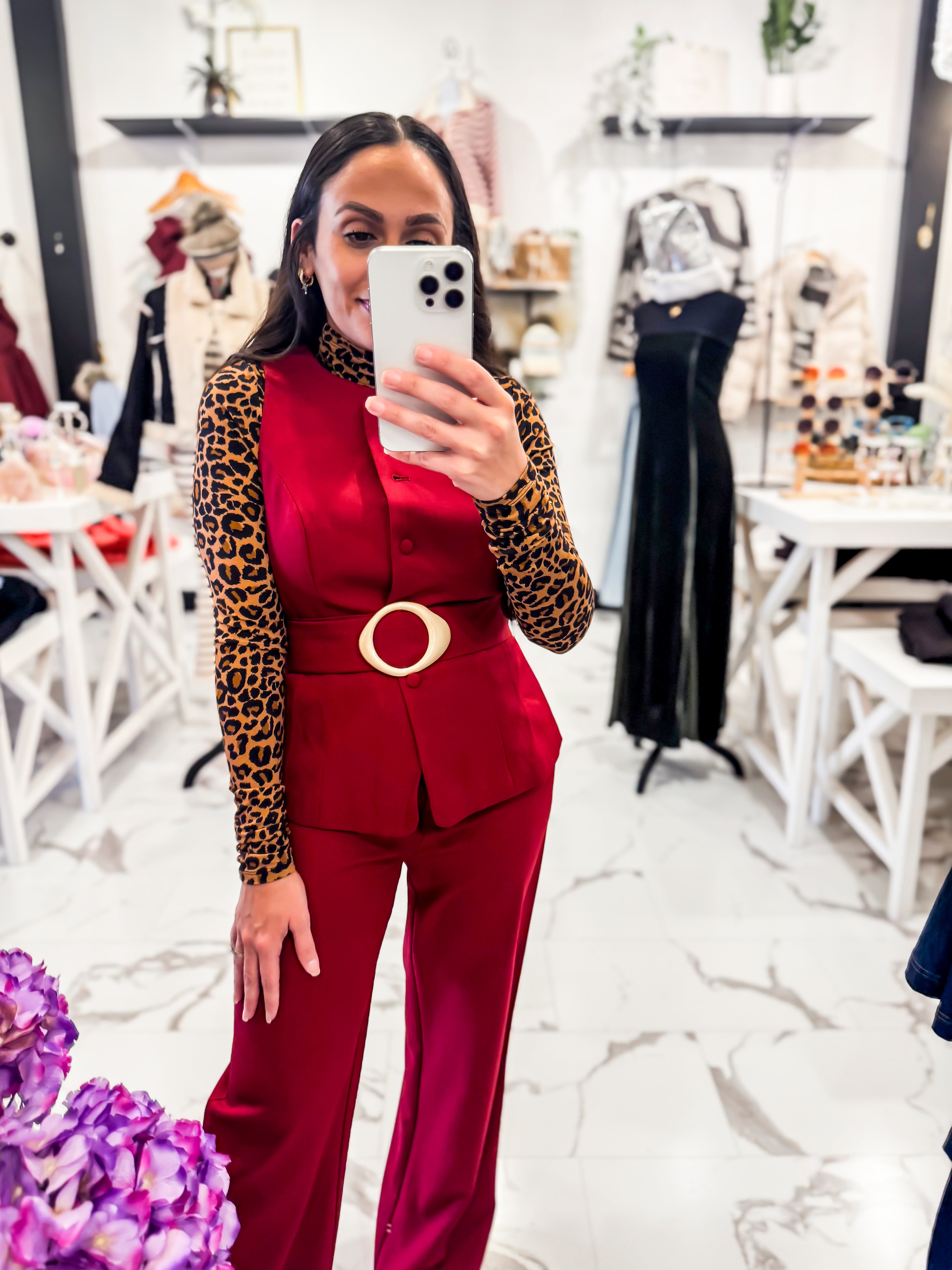 Slip into your bold era, bestie! The Wild At Heart Leopard Top is that effortlessly fierce staple your closet has been missing. Designed in a soft, stretchy knit with a sleek mock neck and fitted silhouette, this top hugs in all the right places without feeling tight. It’s lightweight, comfy, and perfect for layering, but strong enough to steal the spotlight on its own. Pair it with our After Dark Skirt, Aurora Knot Ring, and boots.